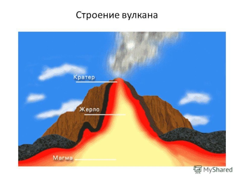 Внутри действующего вулкана бурлит раскаленное вещество магма. Магма, которая изливается наружу, называется лавой.
