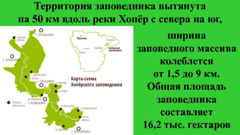 от 1,5 до 9 км. Общая площадь заповедника составляет