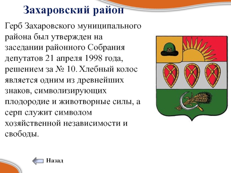 Герб Захаровского муниципального района был утвержден на заседании районного Собрания