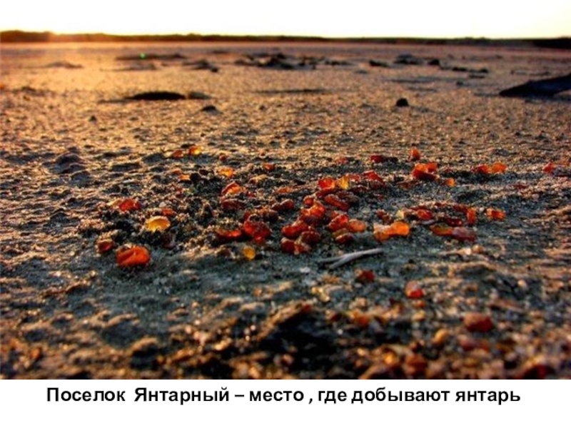 Слайд 9Поселок Янтарный – место , где добывают янтарь