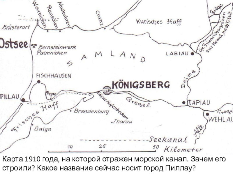 Карта 1910 года, на которой отражен морской канал. Зачем его строили? Какое название сейчас носит город Пиллау?