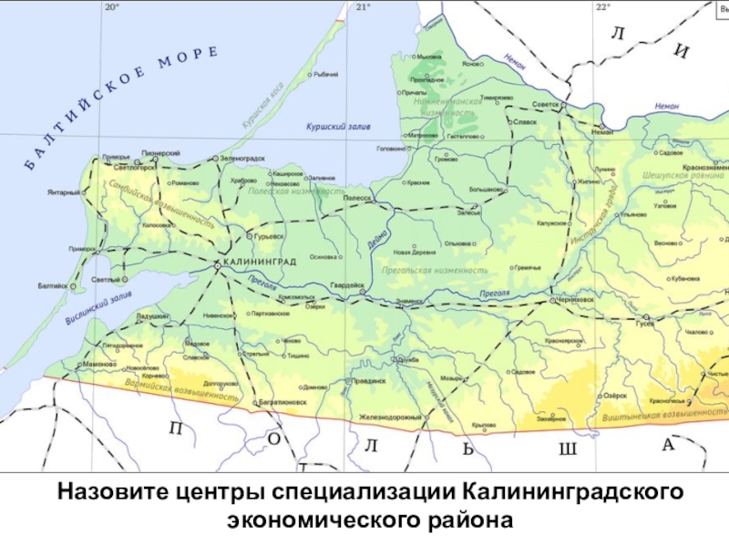 Слайд 14Назовите центры специализации Калининградского экономического района