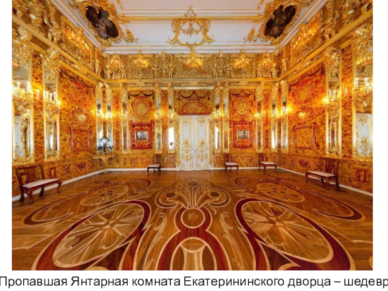 Слайд 10Пропавшая Янтарная комната Екатерининского дворца – шедевр 18 в.