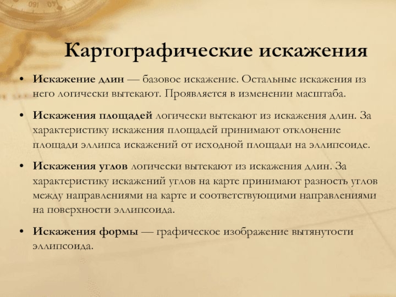 Искажение длин — базовое искажение. Остальные искажения из него логически вытекают. Проявляется