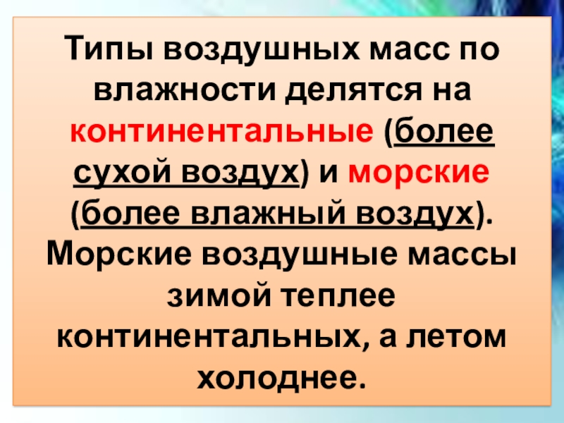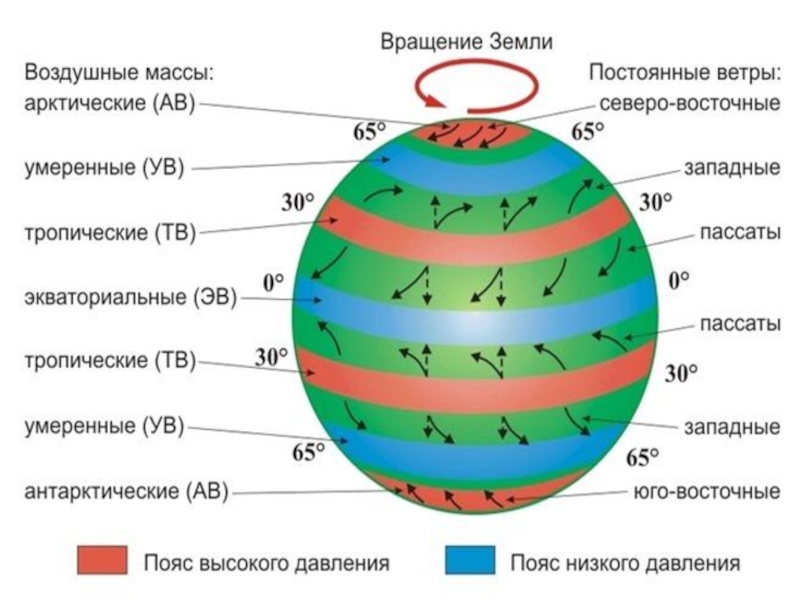 Из-за неодинакового нагрева поверхности на разных широтах тропосфера разделяется на воздушные массы.