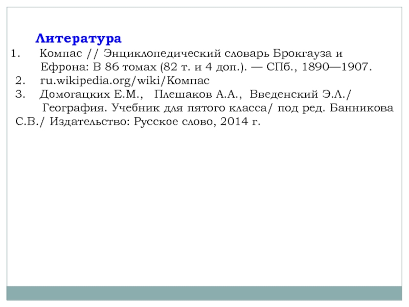 Литература Компас // Энциклопедический словарь Брокгауза и    Ефрона: В 86 томах (82 т. и 4 доп.). — СПб.,