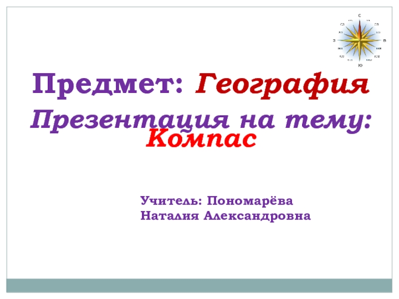 Предмет: География  Презентация на тему: КомпасУчитель: Пономарёва Наталия Александровна