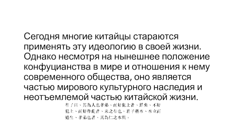 Слайд 17 Сегодня многие китайцы стараются применять эту идеологию в своей жизни. Однако