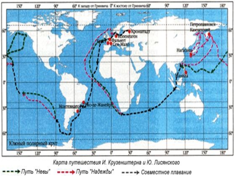Презентация, доклад по географии на тему Кругосветное путешествие Лисянского и Крузенштейна
