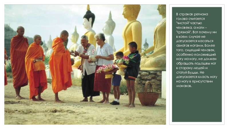 Слайд 4В странах региона голова считается "чистой" частью человека, а ноги –