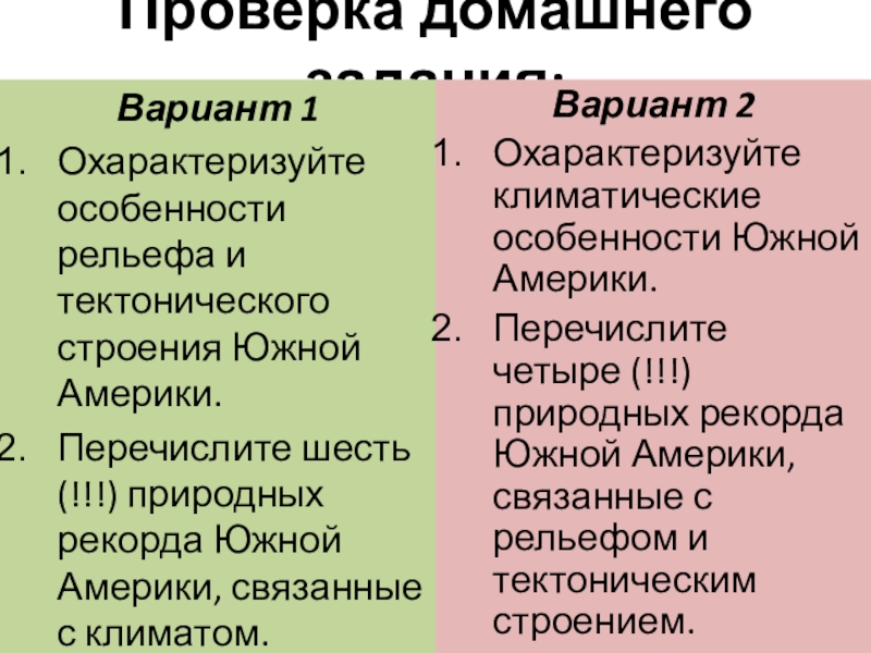 Перечислите четыре (!!!) природных рекорда Южной Америки, связанные с рельефом и тектоническим строением.