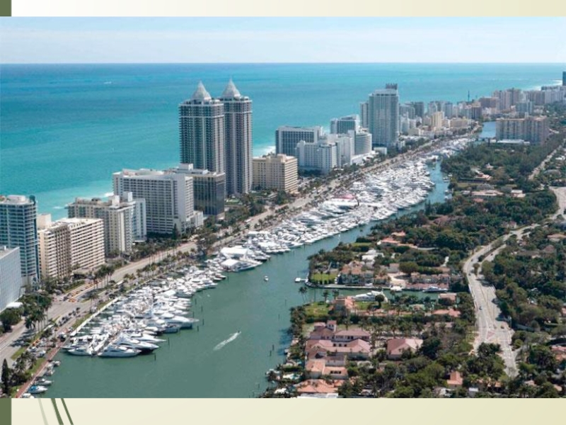 Это "солнечный штат" Флорида, который ежегодно посещает 50 млн. туристов и отдыхающих, что делает Майами крупнейшим курортом мира; цитрусовые отсюда расходятся по всей стране.