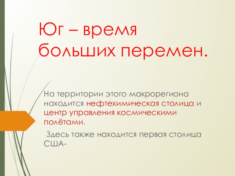 Слайд 26Юг можно назвать многоликим. Ученые-географы выделяют в нем несколько частей.