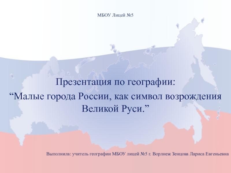 Выполнила: учитель географии МБОУ лицей №5 г. Ворлнеж Зенцова Лариса Евгеньевна