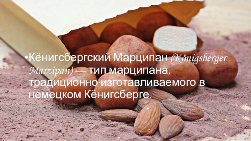 Слайд 2Кёнигсбергский Марципан (Königsberger Marzipan) — тип марципана, традиционно изготавливаемого в немецком