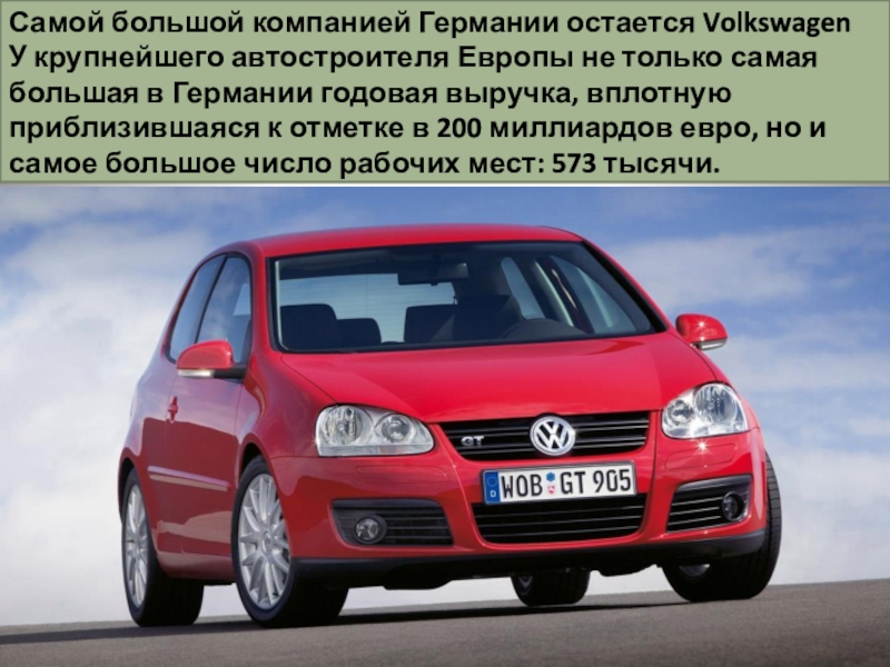 Слайд 16Самой большой компанией Германии остается Volkswagen