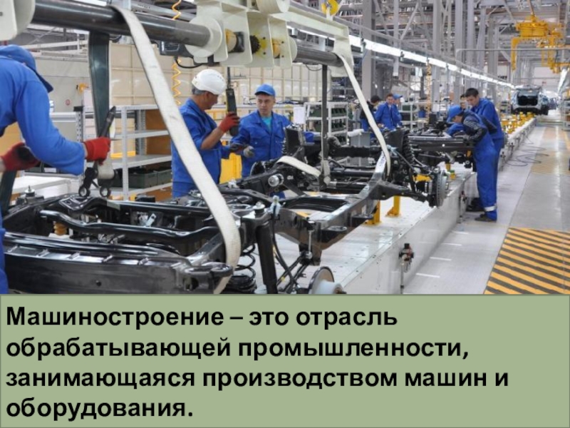 Слайд 2Машиностроение – это отрасль обрабатывающей промышленности, занимающаяся производством машин и оборудования.