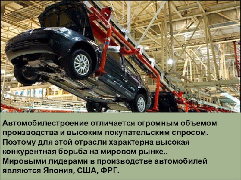Слайд 13Автомобилестроение отличается огромным объемом производства и высоким покупательским спросом. Поэтому для
