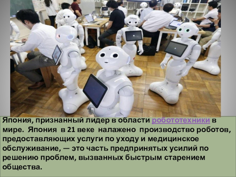 Слайд 18Япония, признанный лидер в области робототехники в мире. Япония в 21 веке налажено