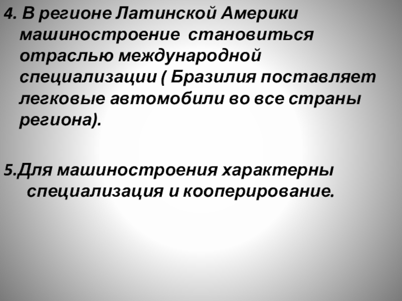 Слайд 64. В регионе Латинской Америки машиностроение становиться отраслью международной специализации (