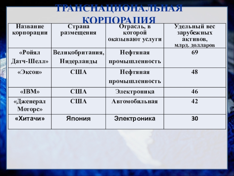 Какие отрасли промышленности находятся под контролем крупных транснациональных корпораций?
