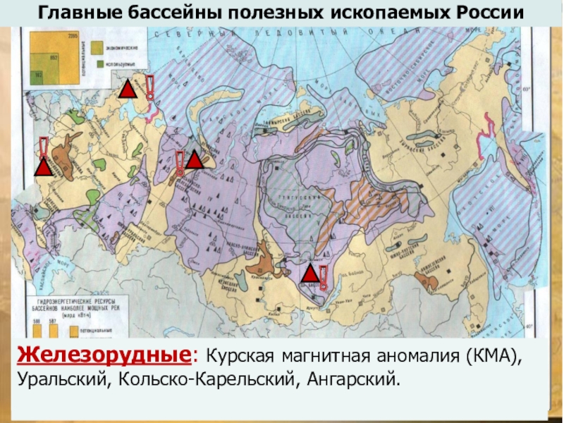 Щит- рудные полезные ископаемые: железная руда, руды цветных и редких металлов