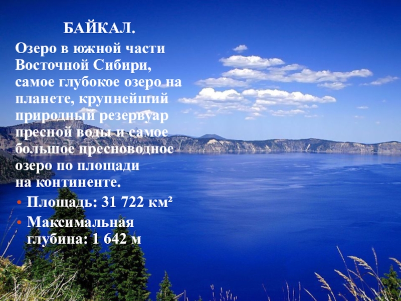 Озеро в южной части Восточной Сибири, самое глубокое озеро на