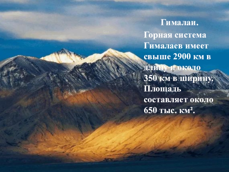 Горная система Гималаев имеет свыше 2900 км в длину и около