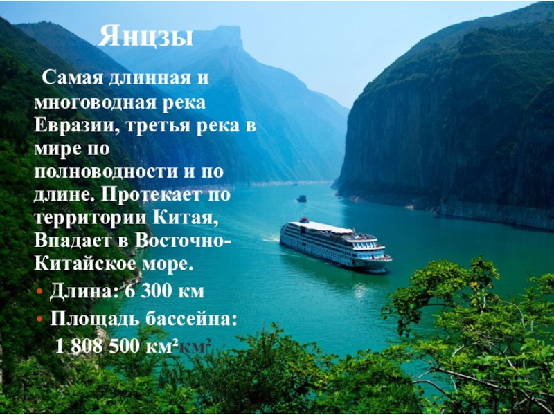 мире по полноводности и по длине. Протекает по территории Китая, Впадает в Восточно-Китайское море.