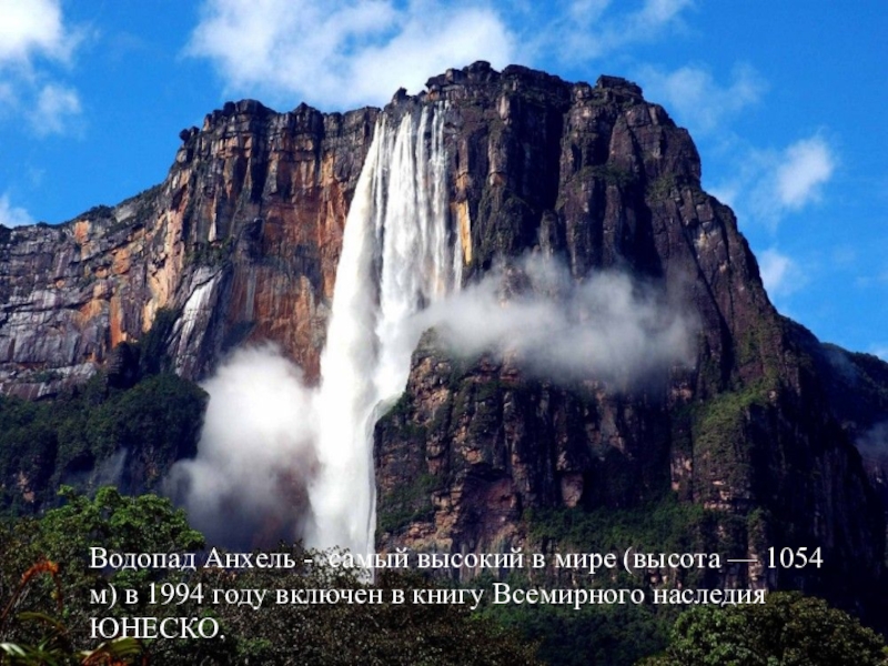 Слайд 18Водопад Анхель - самый высокий в мире (высота — 1054 м)