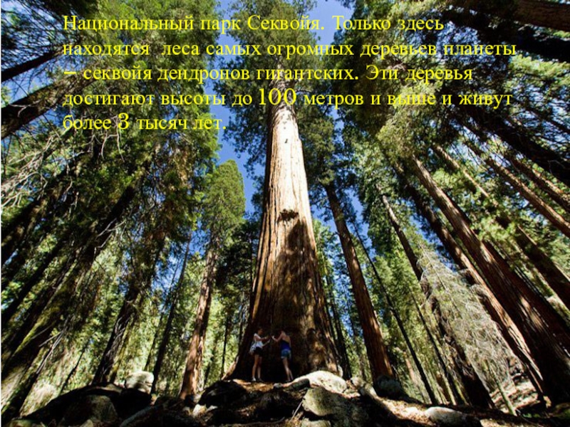 Слайд 19Национальный парк Секвойя. Только здесь находятся леса самых огромных деревьев планеты