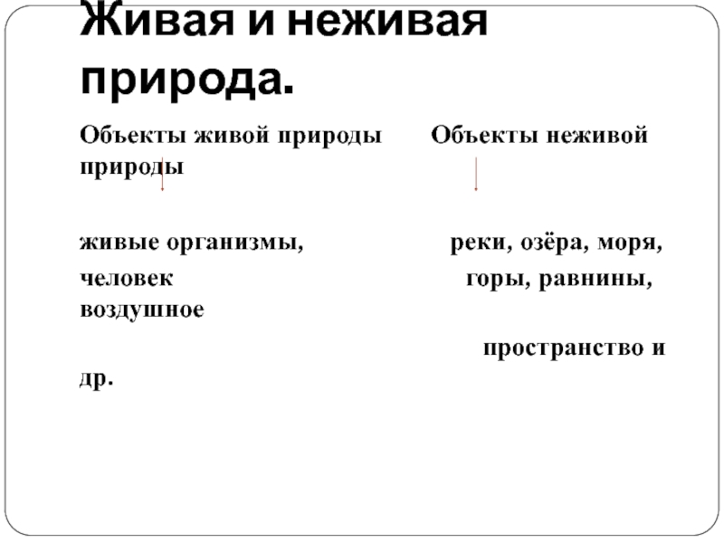 Объекты живой природы Объекты неживой