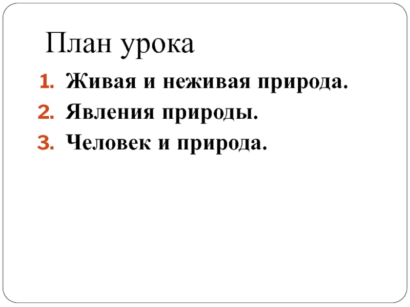 План урокаЖивая и неживая природа.Явления природы.Человек и природа.