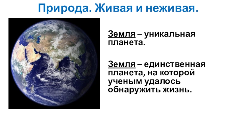 Природа. Живая и неживая.Земля – уникальная планета.Земля – единственная планета, на которой ученым удалось обнаружить жизнь.