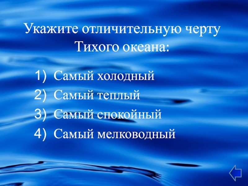 Это единственный океан, который лежит на одной океанической литосферной плите - Тихоокеанской, все остальные – на стыке материковых литосферных плит.