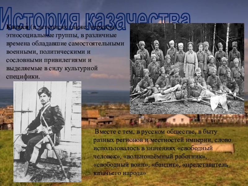 Слайд 10Ходом истории казачество превратилось из вольнолюбивой в привилегированную военную касту. Звание