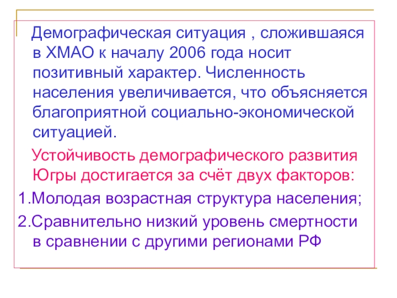 Слайд 6 Демографическая ситуация , сложившаяся в ХМАО к началу 2006
