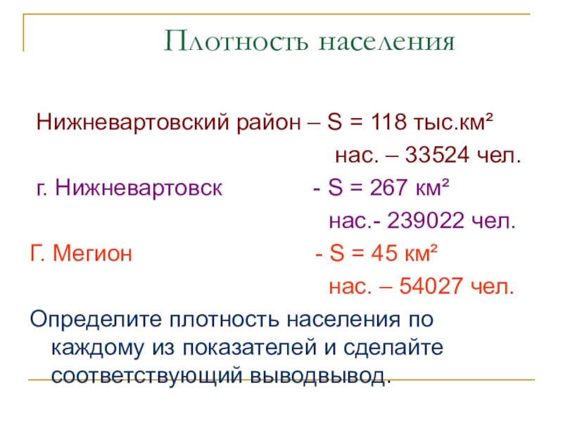 Плотность населения Нижневартовский район – S = 118 тыс.км²