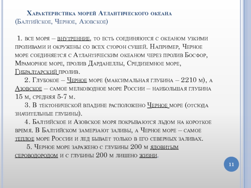 Слайд 11 Характеристика морей Атлантического океана