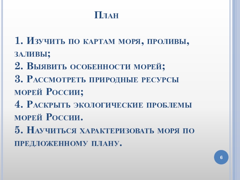 5. Научиться характеризовать моря по предложенному плану.