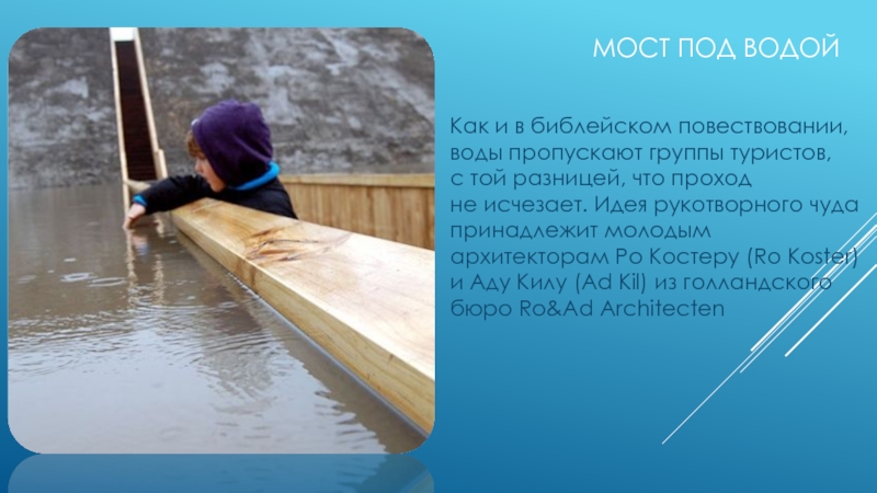 что проход не исчезает. Идея рукотворного чуда принадлежит молодым архитекторам Ро Костеру (Ro Koster) и Аду Килу (Ad Kil) из голландского бюро Ro&Ad Architecten