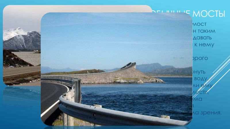 иллюзию не моста, а трамплина, с которого можно вместе с автомобилем нырнуть в ледяную морскую воду. Местные жители дали ему прозвище «Пьяный мост», потому что его форма постоянно меняется в зависимости от угла зрения.