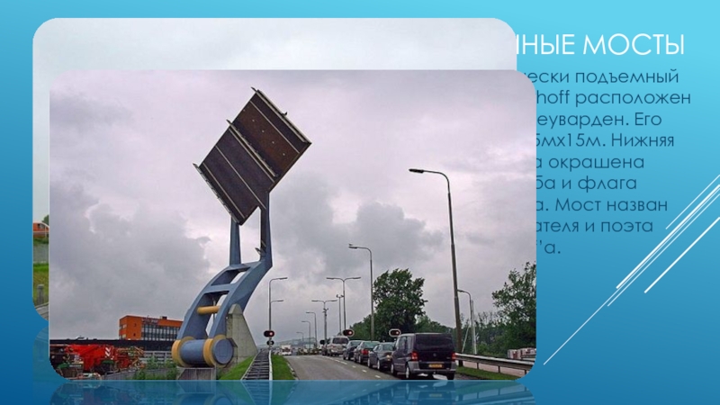 Автоматически подъемный мост Slauerhoff расположен в городке Леуварден. Его размеры 15мх15м.