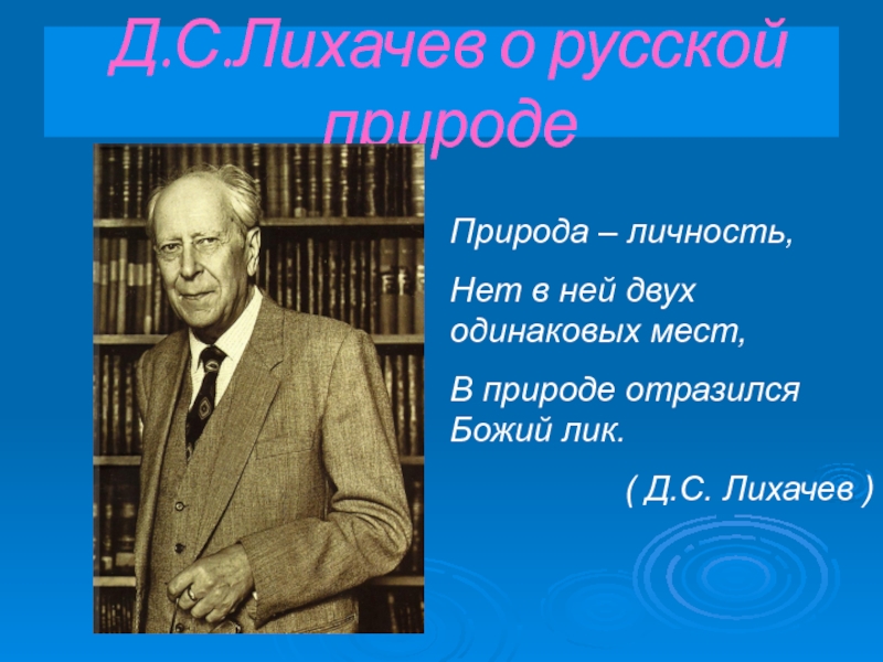 Слайд 4«У природы есть своя культура. Русская природа в основном создавалась усилиями