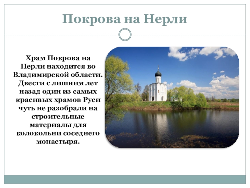 11.Храм Покрова на Нерли находится (во Владимирской области)