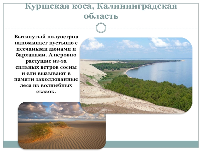 барханами. А неровно растущие из-за сильных ветров сосны и ели вызывают в памяти заколдованные леса из волшебных сказок.