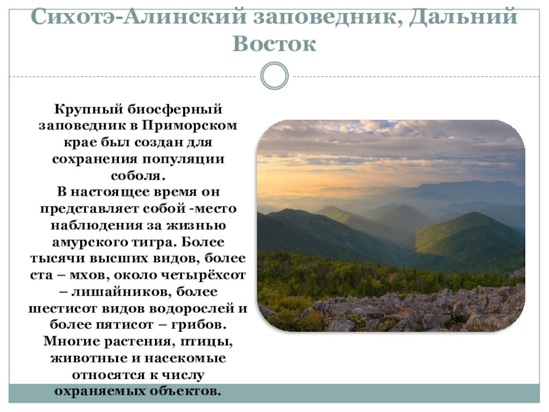 Слайд 28Сихотэ-Алинский заповедник, Дальний Восток