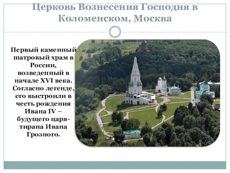 Слайд 17Церковь Вознесения Господня в Коломенском, Москва