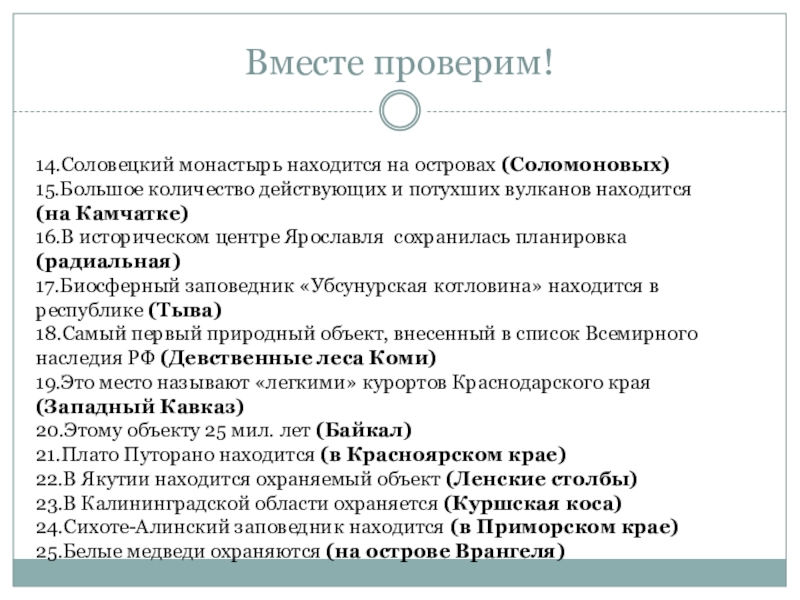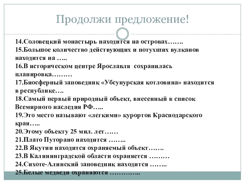 18.Самый первый природный объект, внесенный в список Всемирного наследия РФ…..