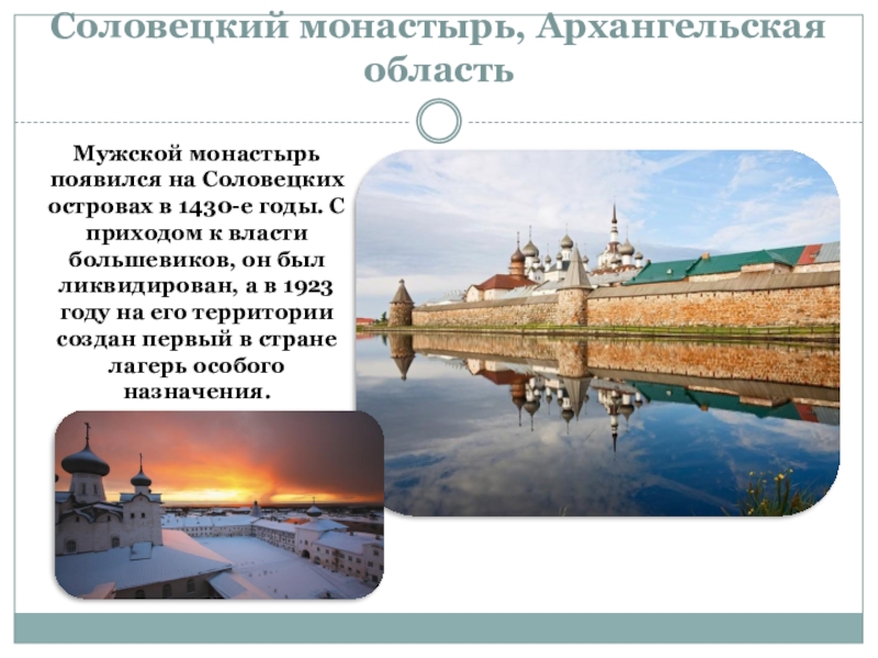 годы. С приходом к власти большевиков, он был ликвидирован, а в 1923 году на его территории создан первый в стране лагерь особого назначения.